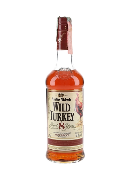 A bottle of Wild Turkey Kentucky Straight Bourbon whiskey, matured for eight year and bottled by the Austin Nichols Distilling Company we estimate in the 2000s.