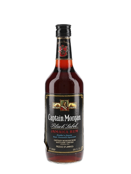 A bottle of Captain Morgan Black Label Rum. We estimate this was bottled in the 1970s.