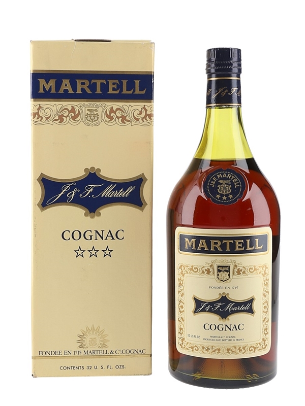 A 94.6cl bottle of Martell 3 Star Cognac. We estimate this was bottled in the 1970s.