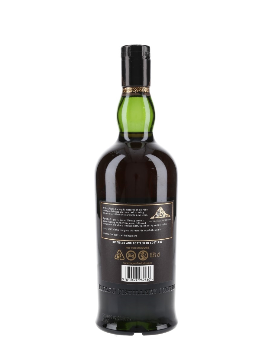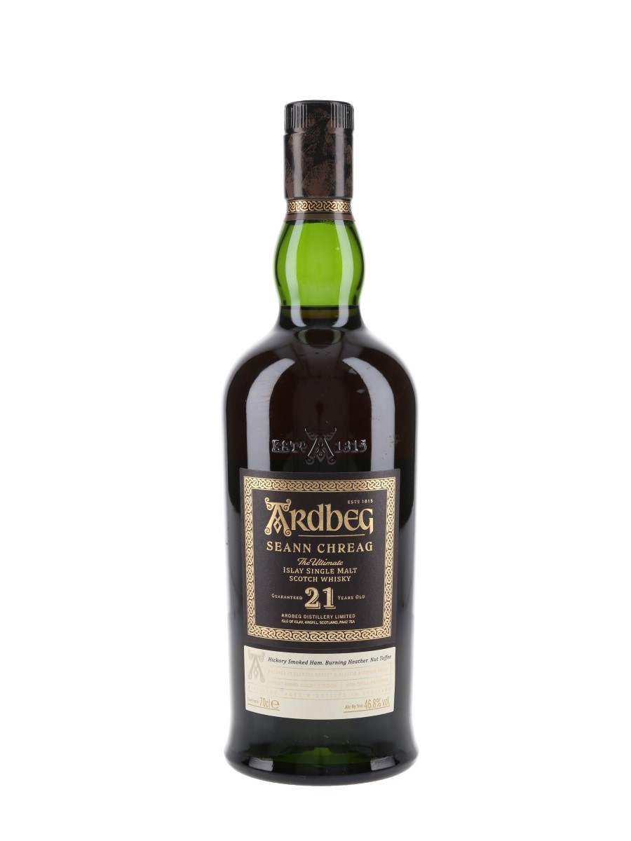 A bottle of Ardbeg 21 Year Old Seann Chreag Islay Single Malt Scotch Whisky. The bottling code indicates that this was bottled in 2024.
