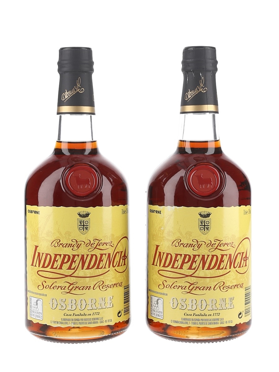 This lot contains two bottles of Osborne Independencia Solera Gran Reserva Brandy de Jerez from Spain.