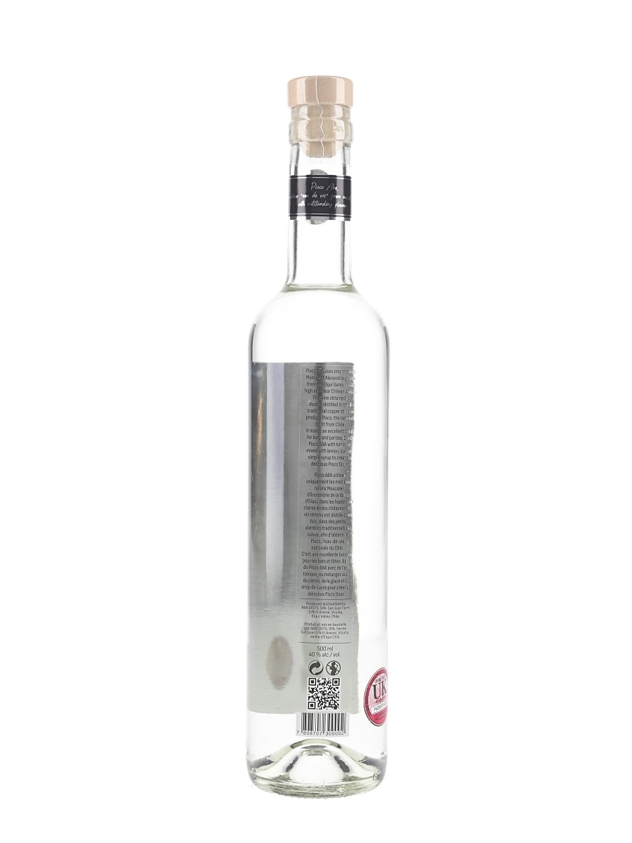 A 50cl bottle of ABA Pisco, crafted in copper pot stills from the fermented juice of Muscat grapes grown in the Chilean Andes.
