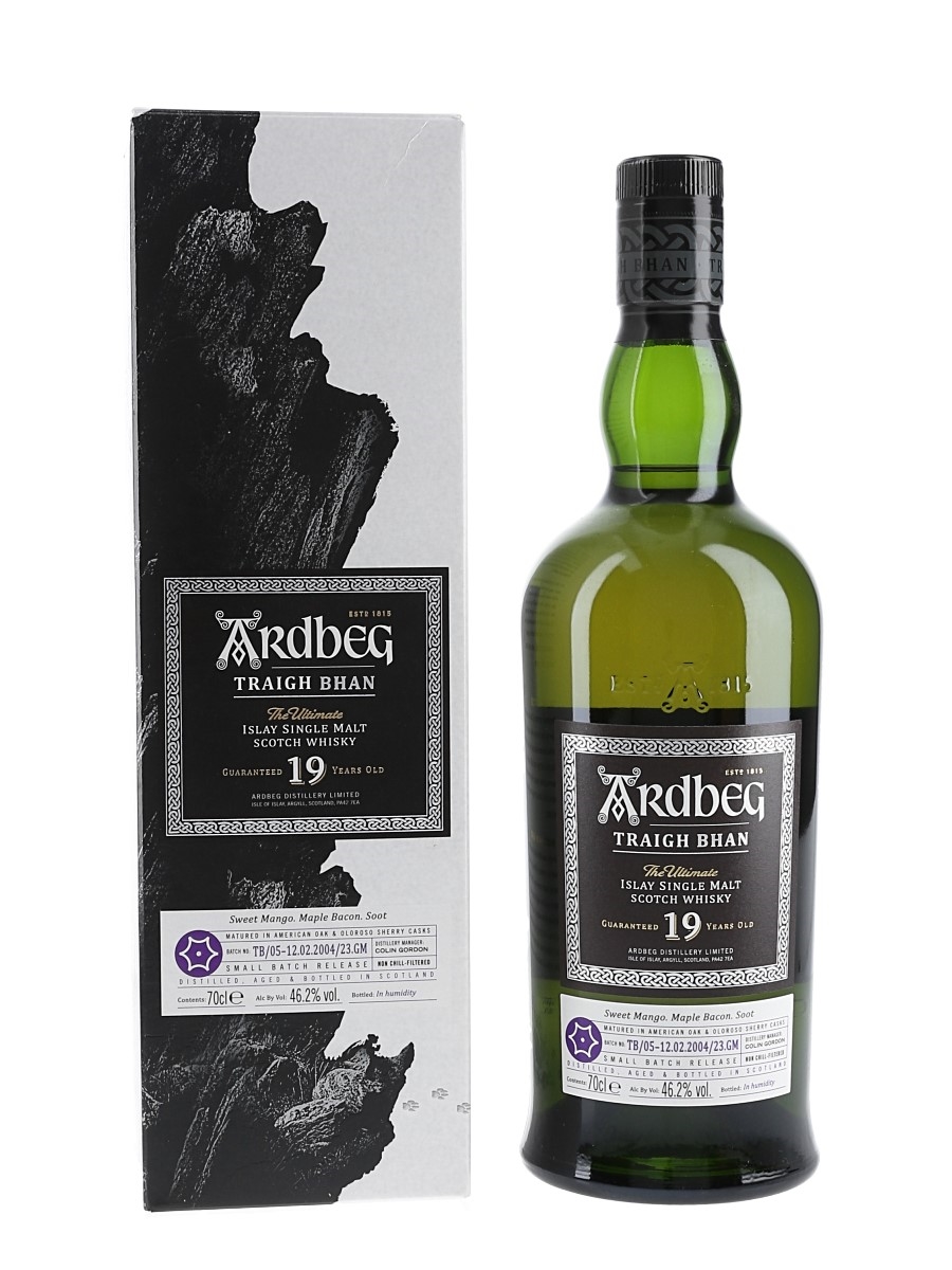 A small batch release of Ardbeg 19 Year Old Traigh Bhan The Ultimate Islay Single Malt Scotch Whisky, matured in a combination of American oak and oloroso sherry casks and bottled on 3 May 2023.
