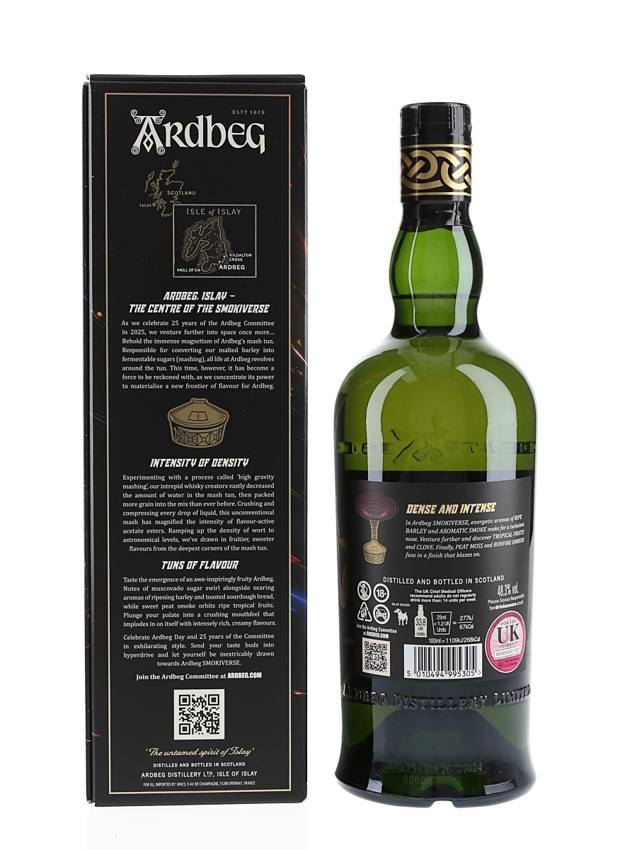 A bottle of Ardbeg Ardbeg Smokiverse The Ultimate Islay Single Malt Scotch Whisky. The bottling code indicates this was bottled in 2024.