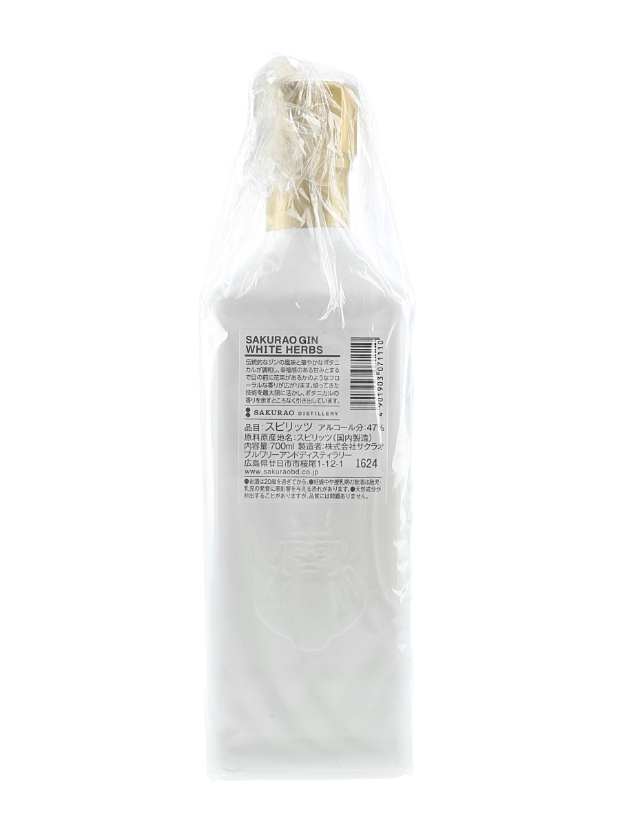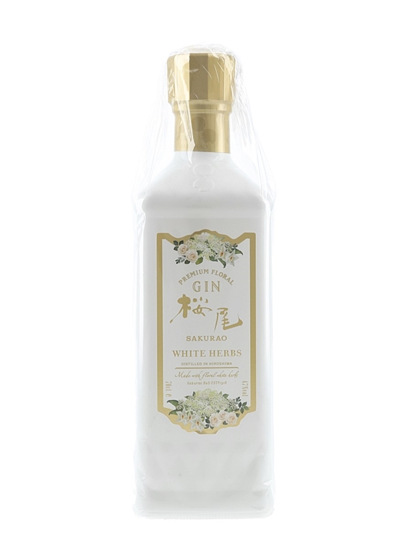 A bottle of Sakurao White Herbs Gin from Hiroshima, Japan.