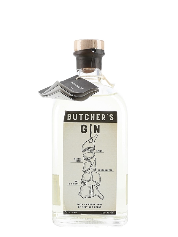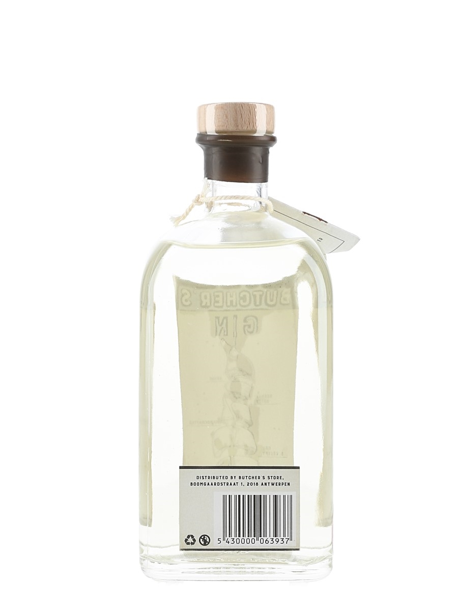 A bottle of Butcher's Gin, distributed by Butcher's Store, Antwerp.