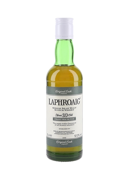 A half bottle of Laphroaig 10 Year Old Original Cask Strength Single Malt Scotch Whisky. We estimate this was bottled in the 2000s.