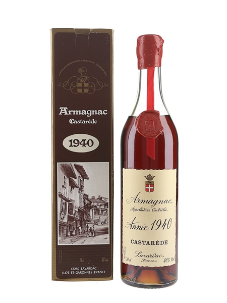 A bottle of Castarède Bas Armagnac, distilled in 1940.