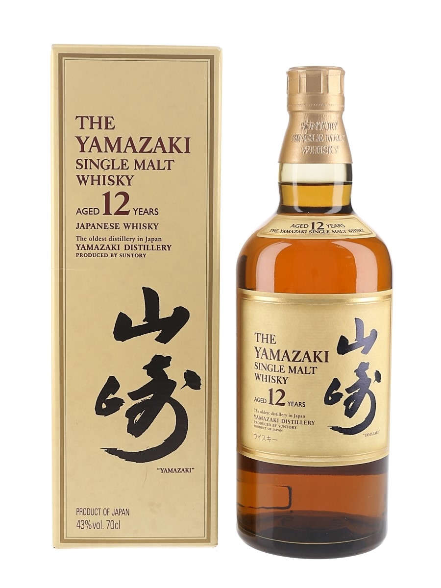 A bottle of The Yamazaki Single Malt Japanese Whisky Aged 12 Years, The Oldest Distillery In Japan. This was imported by Morrison Bowmore distillers Ltd. This was bottled prior to the end of 2019 when the box changed from yellow to black.