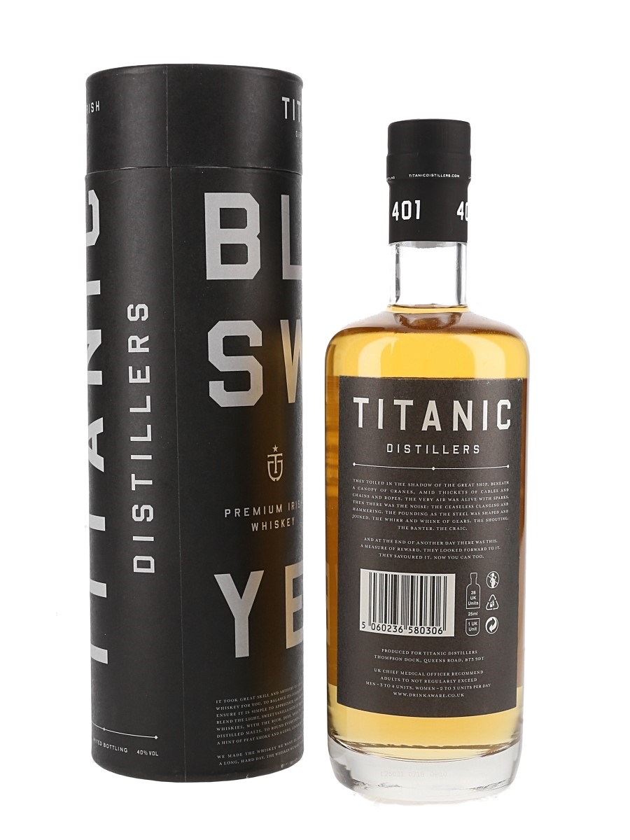 A bottle of Titanic Premium Irish whiskey, named after the ill-fated ocean liner which was built by the Harland and Wolff shipyard in Belfast.