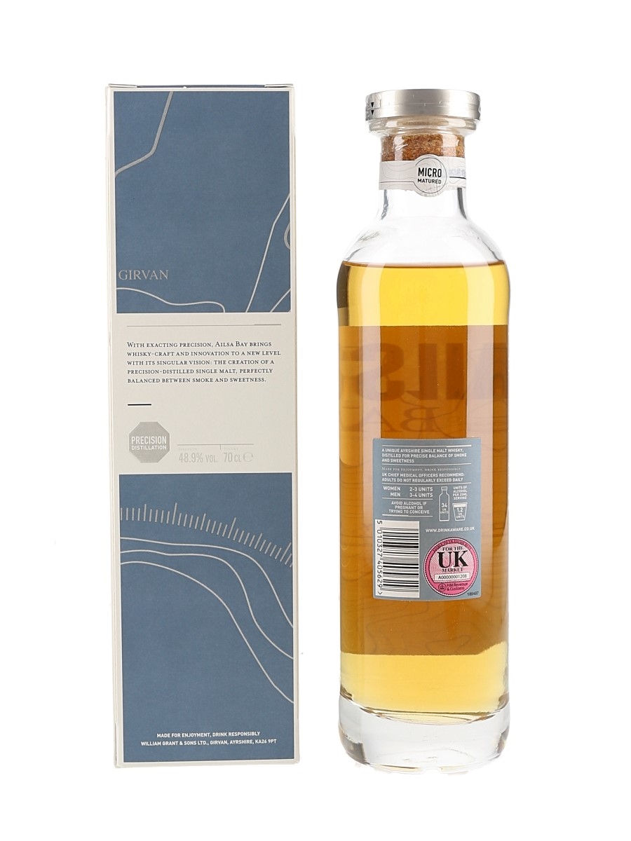 A bottle of Ailsa Bay Single Malt Scotch Whisky, bottled at 48.9% ABV by William Grant & Sons Ltd.
