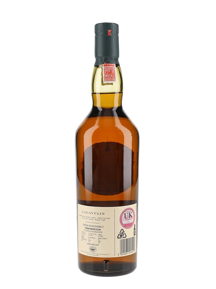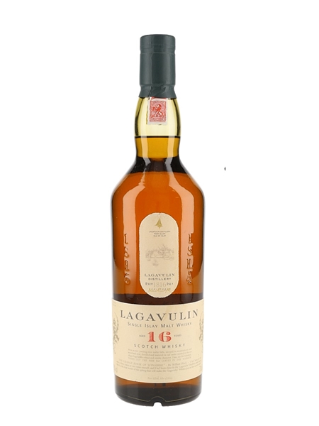 A bottle of Lagavulin 16 Year Old Islay Single Malt Scotch Whisky, part of Diageo's Classic Malts of Scotland range, bottled at 43% ABV.