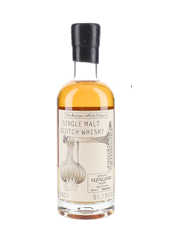 A 50cl bottle of Glenlossie 25 Year Old Single Malt Scotch Whisky, bottled by That Boutique-y Whisky Company at 51.1% ABV.