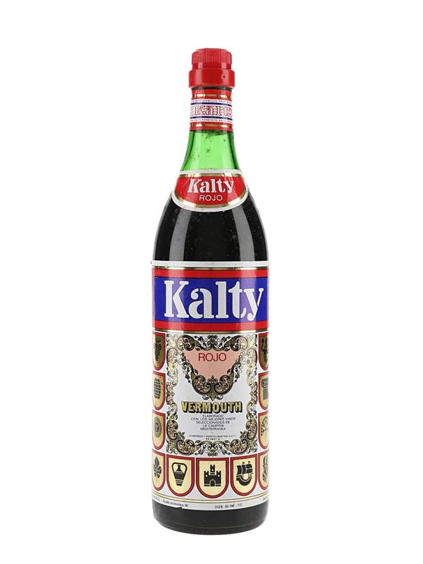 A 93cl bottle of Kalty Rojo vermouth produced in Spain. We estimate this was bottled in the 1970s.