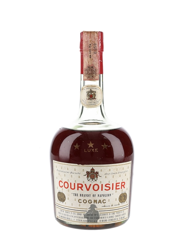 A bottle of Courvoisier 3 Star Luxe Cognac. We estimate this was bottled in the 1960s.