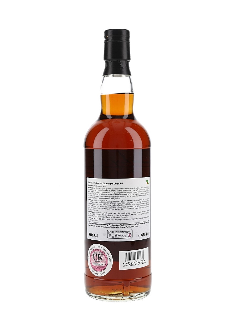 A bottle of Blend On The Run 29 Year Old Blended Malt Scotch Whisky Edition no. 18 - a Christmas Sponge. This was bottled at 45.6% ABV by Decadent Drinks for the Whisky Sponge.