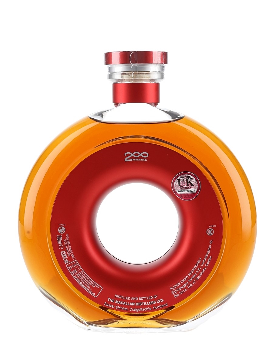 A bottle of The Macallan Time : Space - Mastery. This was released in 2024 to celebrate the 200th anniversary of the Macallan distillery. Fourteen types of cask have been married together, to create this unique Single Malt which celebrates the legacy of Macallan.