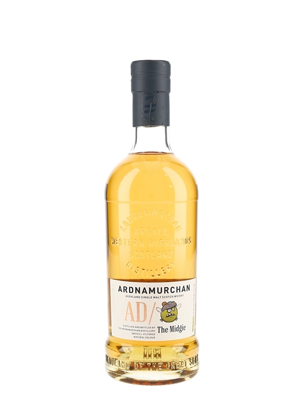 A bottle of Ardnamurchan AD The Midgie Highland Single Malt Scotch Whisky.