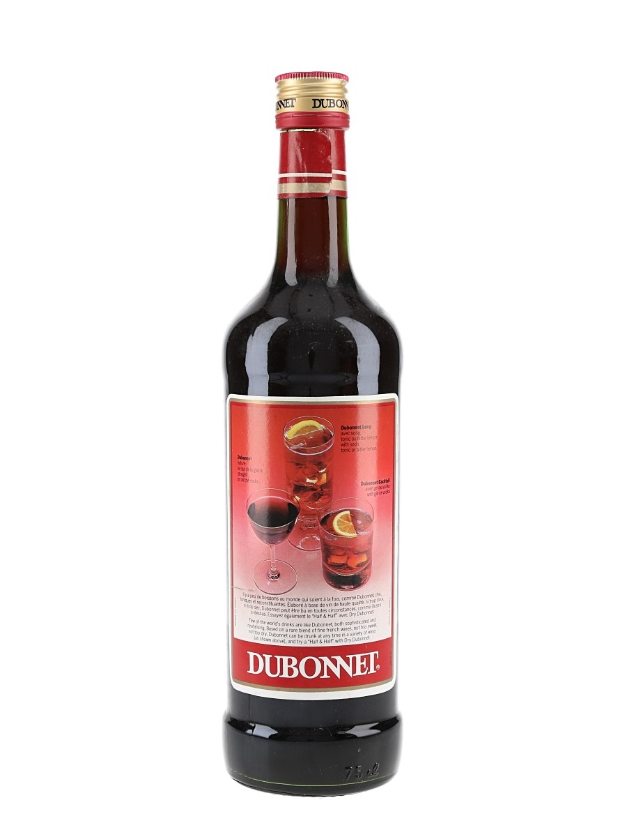 A bottle of Dubonnet Wine Aperitif, a fortified wine flavoured with herbs, spices, and quinine. We estimate this was bottled in the 1980s.
