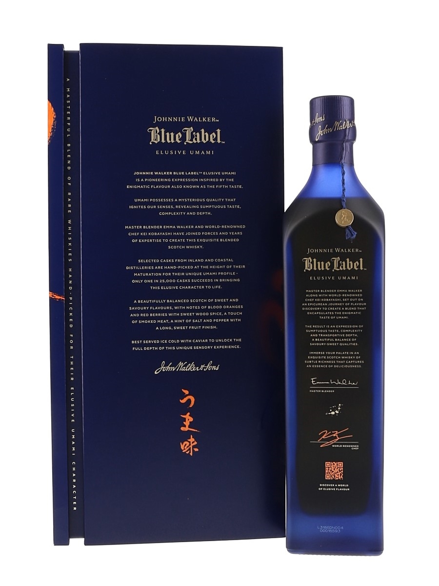 A bottle of Johnnie Walker's Blue Label Elusive Umami. This was made in collaboration with chef Kei Kobayashi.