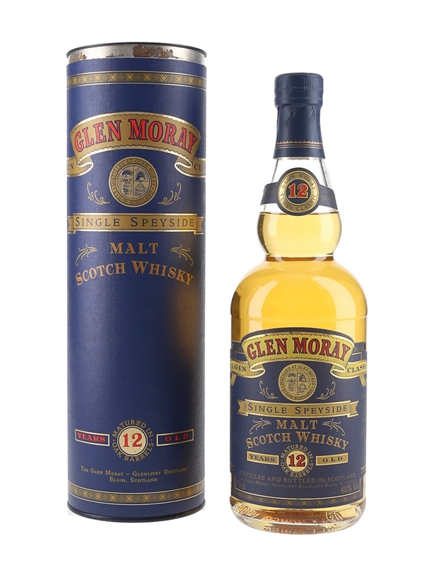 A bottle of Glen Moray 12 Year Old Single Speyside Malt Scotch Whisky. We estimate this was bottled in the late 1990s.