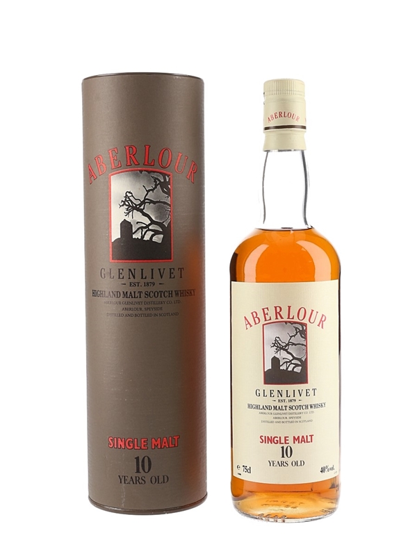 A bottle of Aberlour Glenlivet 10 Year Old Highland Malt Scotch Whisky. We estimate this was bottled in the late 1980s.