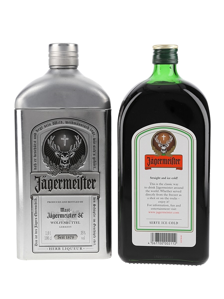 A litre bottle of Jägermeister herbal liqueur from Germany.