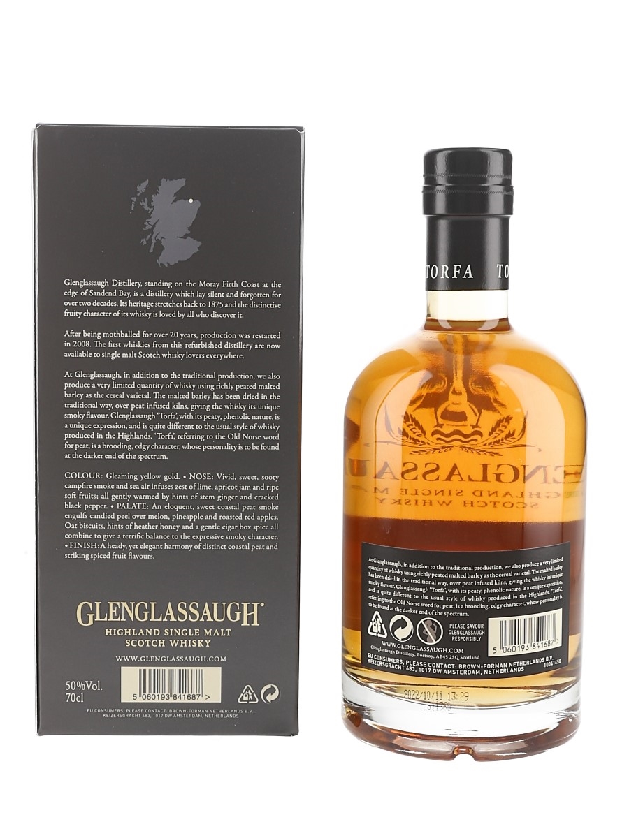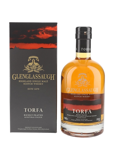 A bottle of Glenglassaugh Torfa Richly Peated Highland Single Malt Scotch Whisky.