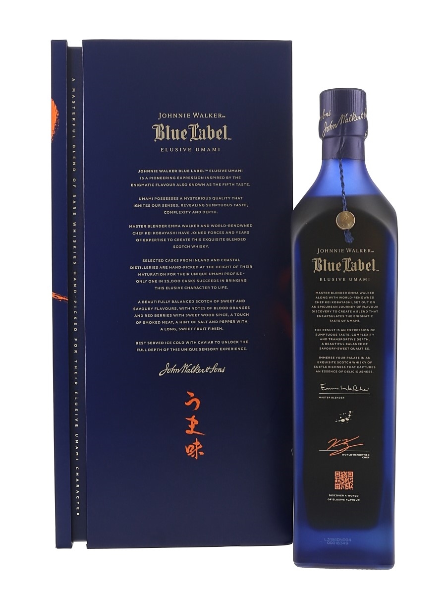 A bottle of Johnnie Walker's Blue Label Elusive Umami. This was made in collaboration with chef Kei Kobayashi.