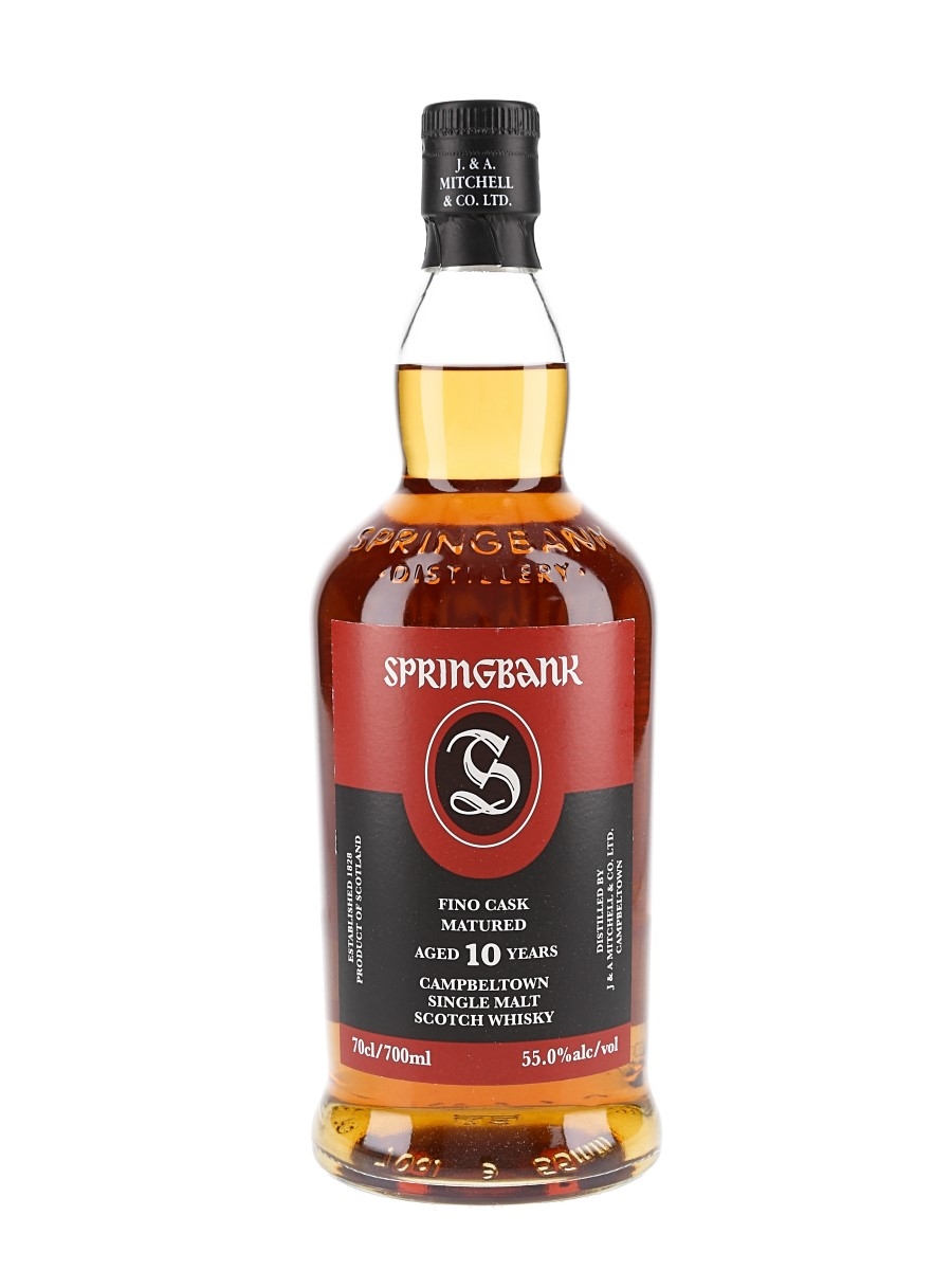 A bottle of Springbank 10 Year Old Campbeltown Single Malt Scotch Whisky. This was distilled in July 2015, matured in fino Sherry casks and bottled at a cask strength of 55% in October 2025.