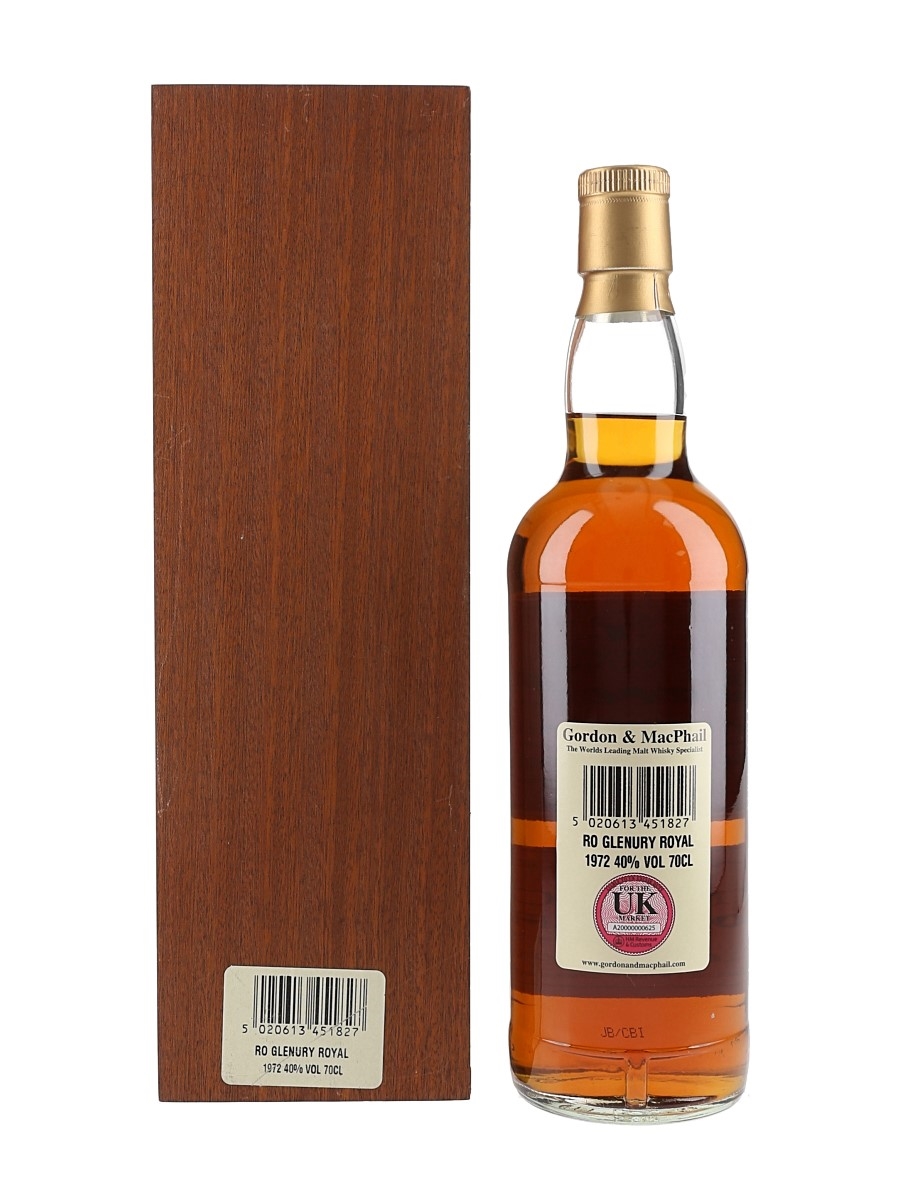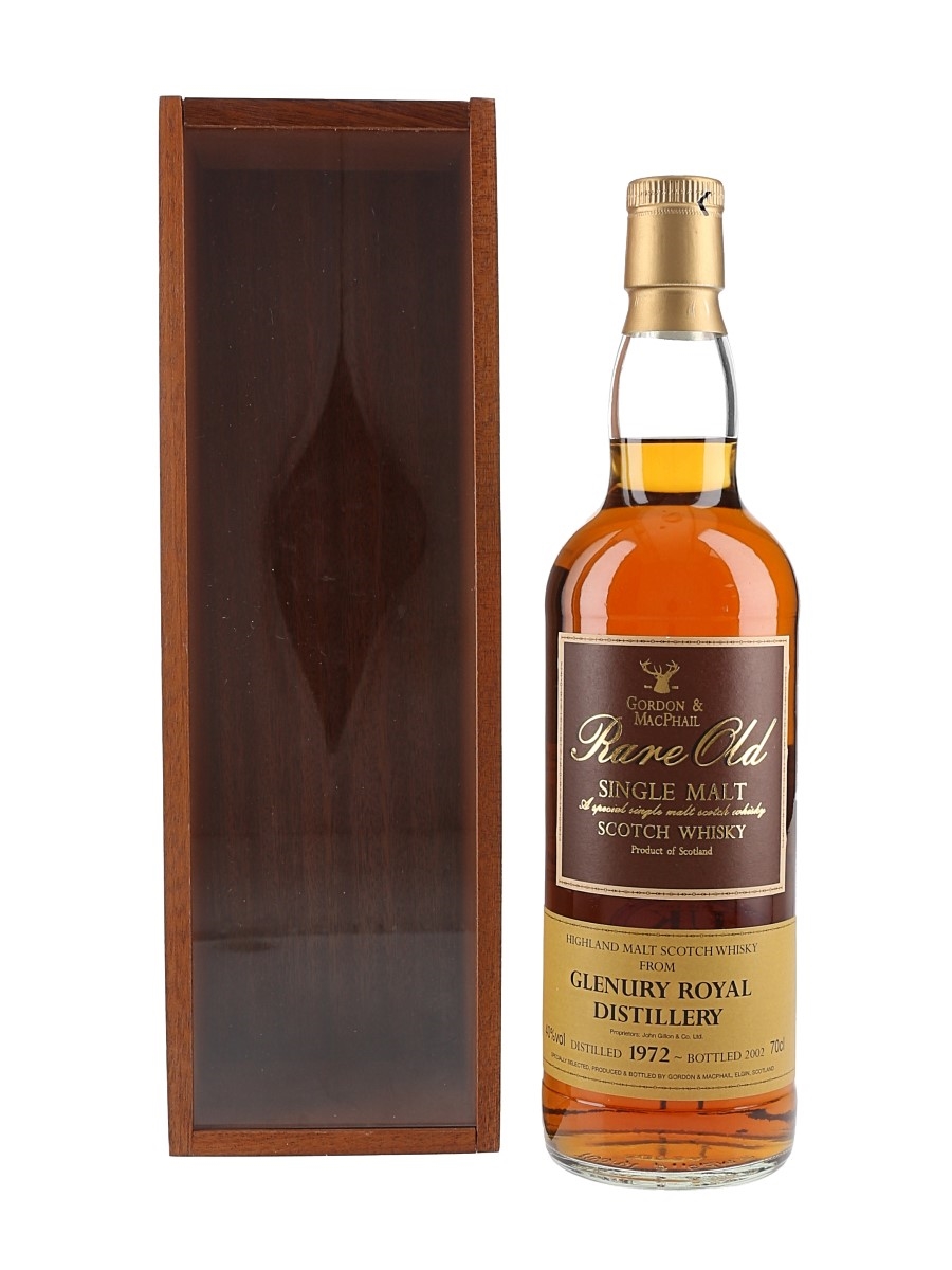 A bottle of Glenury Royal 1972 Highland Single Malt Scotch Whisky. This was bottled by Gordon & MacPhail in 2002 as part of their 'Rare Old' series.
