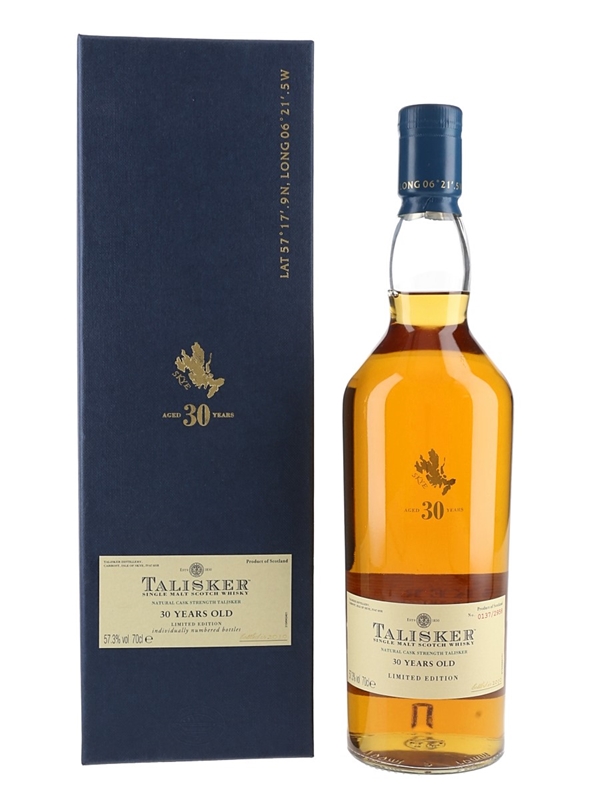 A bottle of Talisker 30 Year Old Single Malt Scotch Whisky. This was bottled at cask strength for Diageo's Special Releases in 2010.
