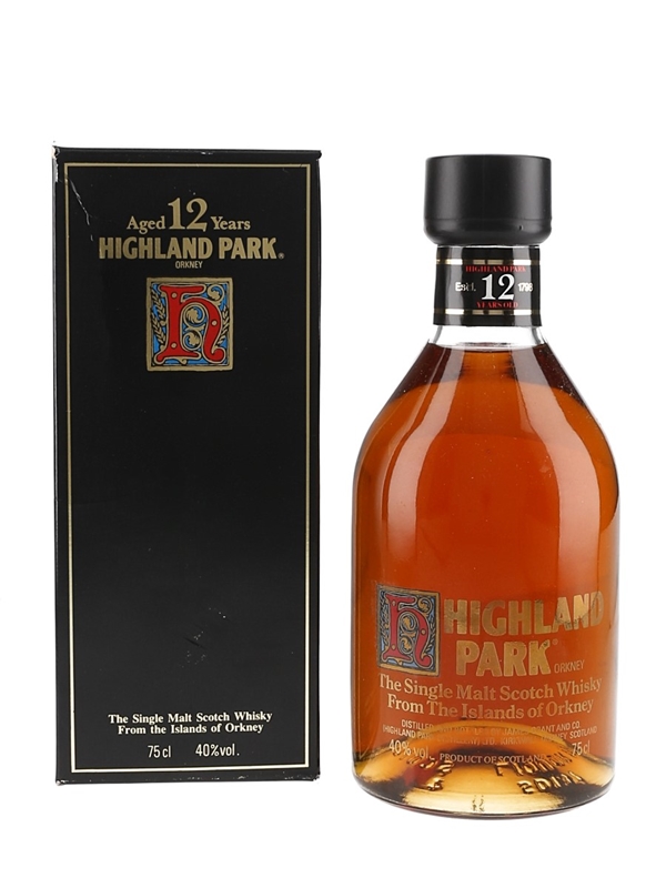 A bottle of Highland Park 12 Year Old Orkney Islands Single Malt Scotch Whisky. We estimate this was bottled in the 1980s.