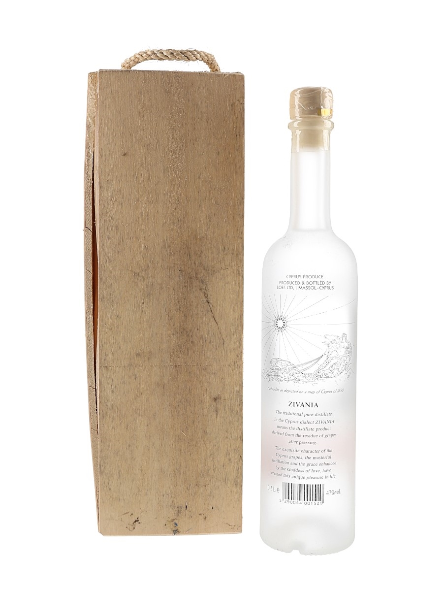 A bottle of Zivania De Luxe, The Divine Spirit from Cyprus. The bottle included two branded shot glasses.