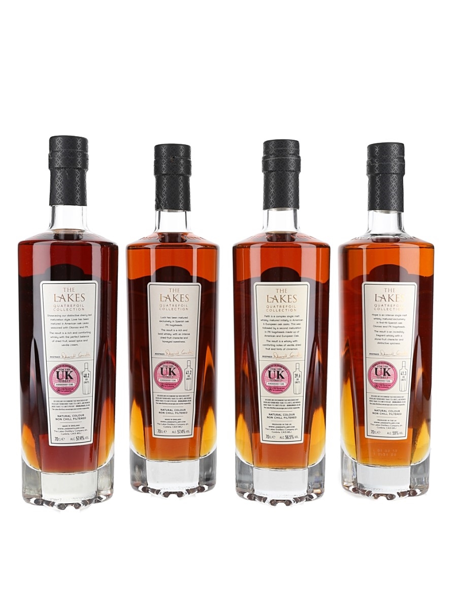 This lot contains four limited edition bottles from The Lakes Single Malt Quatrefoil Collection: