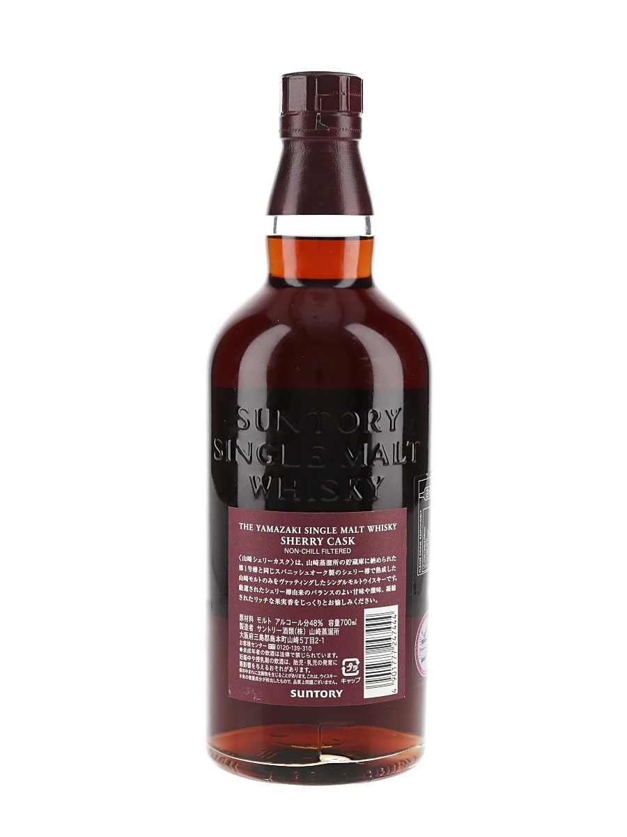 A bottle of The Yamazaki Sherry Cask Single Malt Whisky, produced by Suntory, Japan, bottled in 2013.
