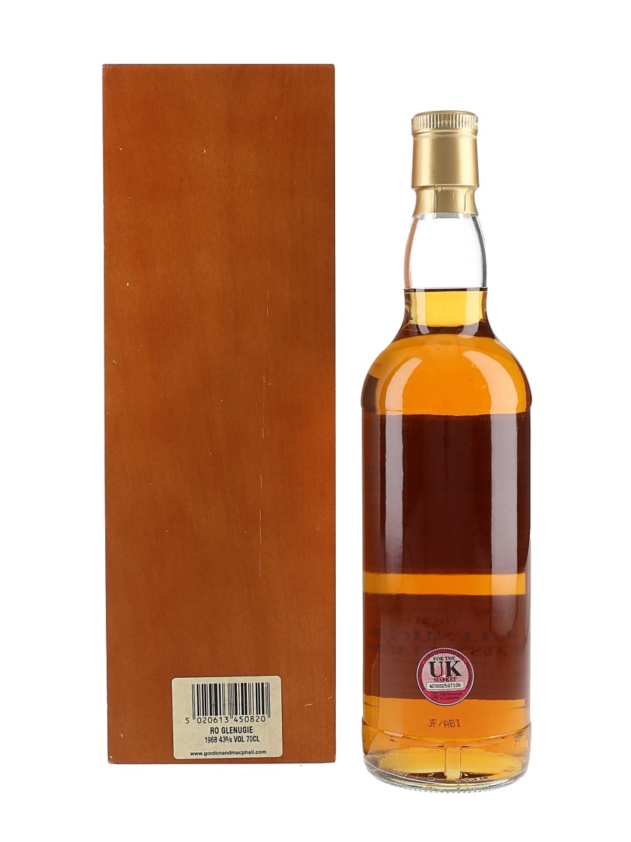 A bottle of Glenugie single malt Scotch whisky. This was distilled in 1968, matured in a single cask, and bottled by Gordon & MacPhail in 2006 as part of its Rare Old series.
