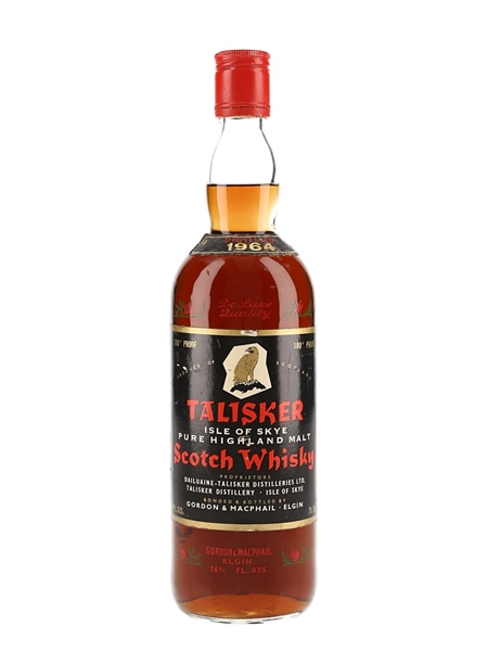 A bottle of Talisker 100 Proof Isle Of Skye Pure Highland Malt Scotch Whisky with the black label, gold eagle design. This was distilled in 1964, bonded and bottled by Gordon & MacPhail, and we estimate it was bottled in the 1970s.