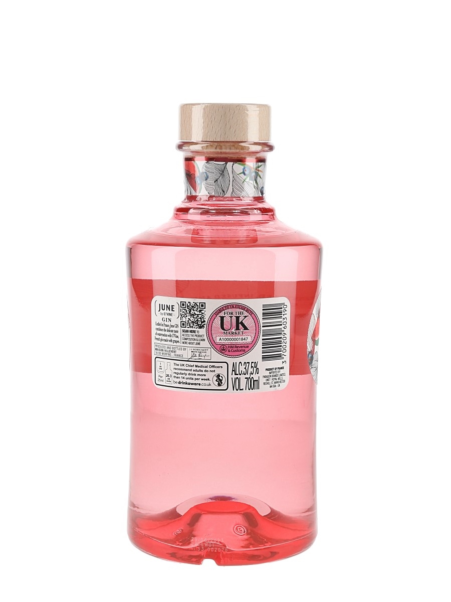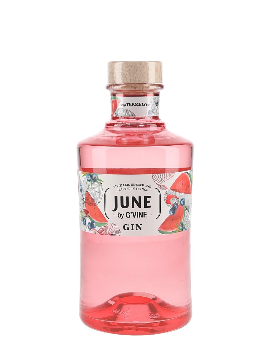A bottle of June by G'Vine watermelon Gin, produced and bottled by Maison Villevert.