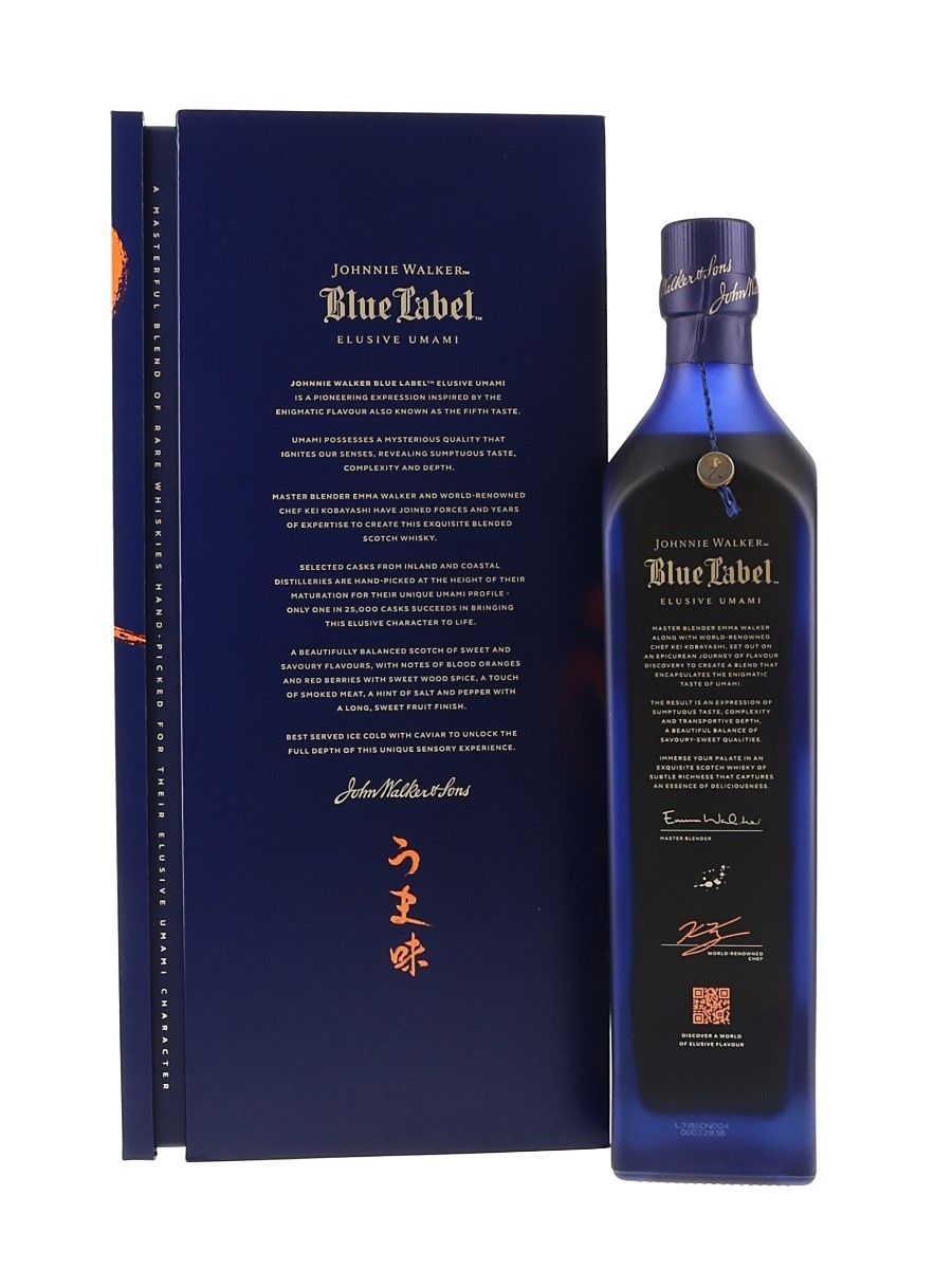 A bottle of Johnnie Walker's Blue Label Elusive Umami. This was made in collaboration with chef Kei Kobayashi.