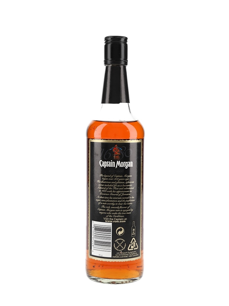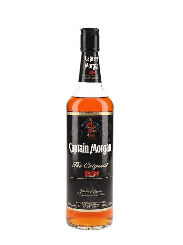 A bottle of Captain Morgan The Original Rum, produce of Jamaica, Guyana, and Barbados.