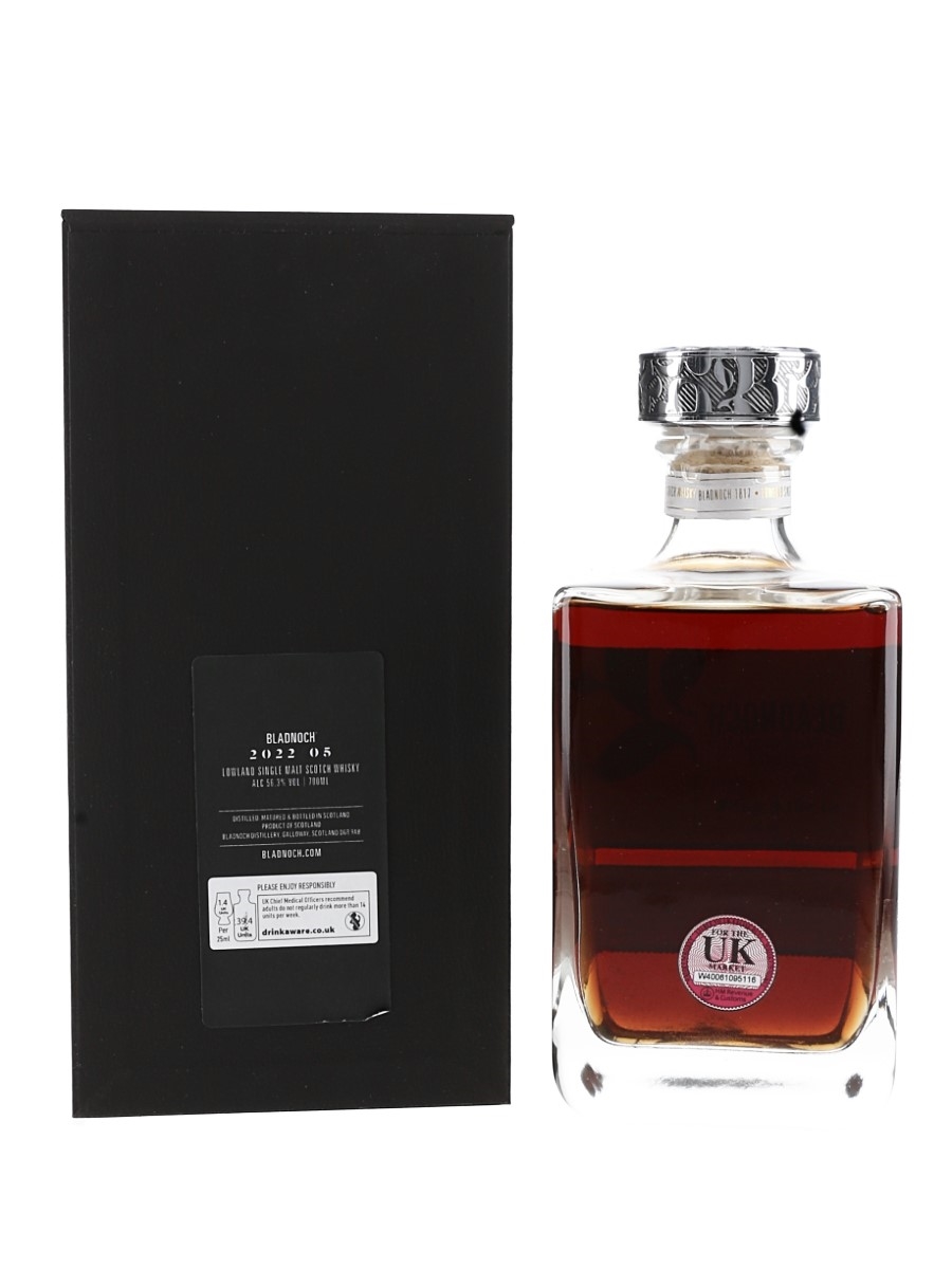 A bottle of Bladnoch Single Cask Exclusive Release Lowland Single Malt Scotch Whisky. This was distilled in July 2007, matured in a single Red Wine Hogshead and bottled in February 2022 at a cask strength of 56.3% ABV.