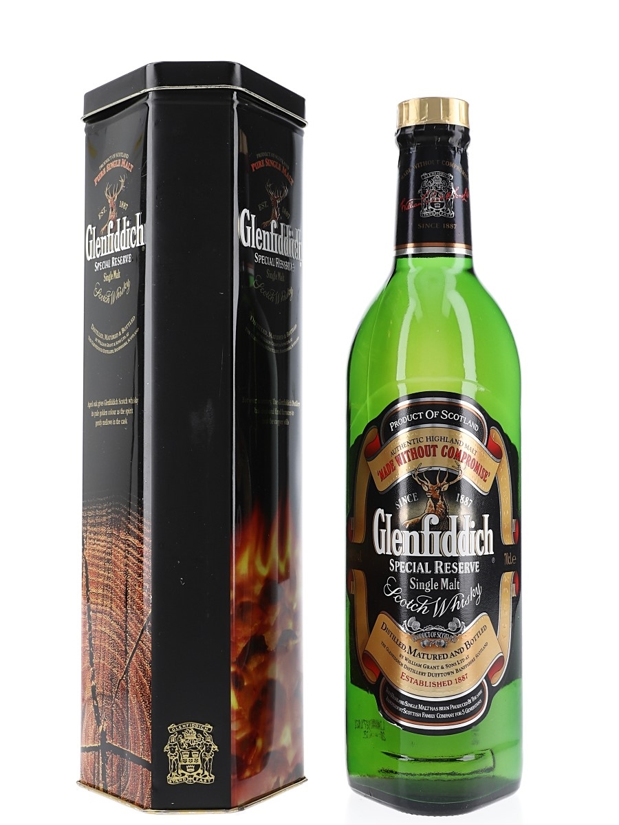A bottle of Glenfiddich Special Old Reserve Pure Single Malt Scotch Whisky produced by William Grant & Sons Ltd. We estimate this was bottled in the 1990s.