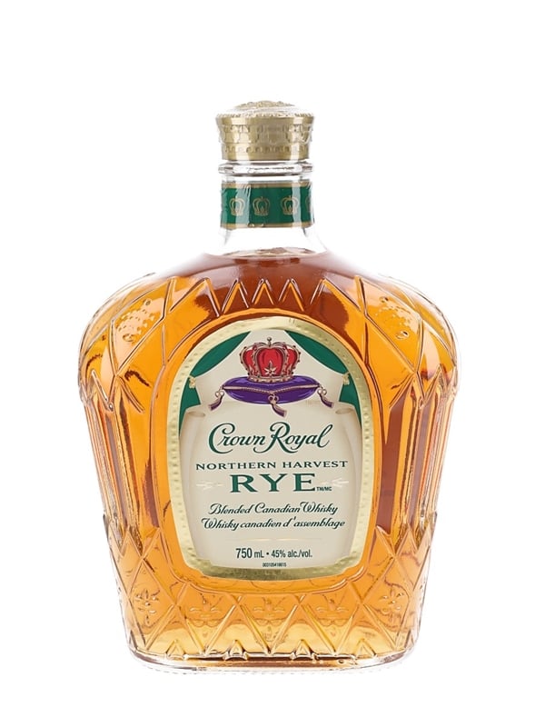 A bottle of Crown Royal Northern Harvest Rye Canadian whisky.
