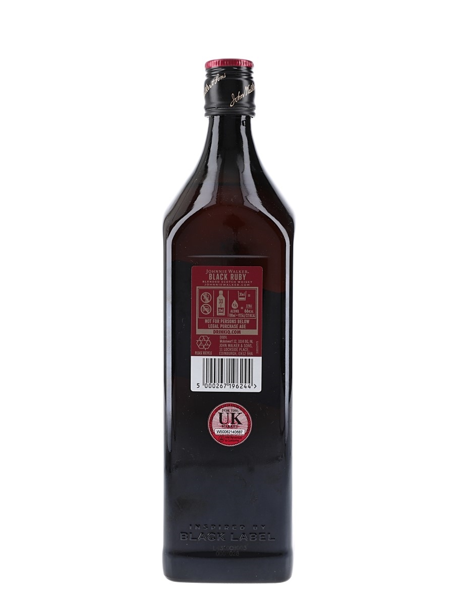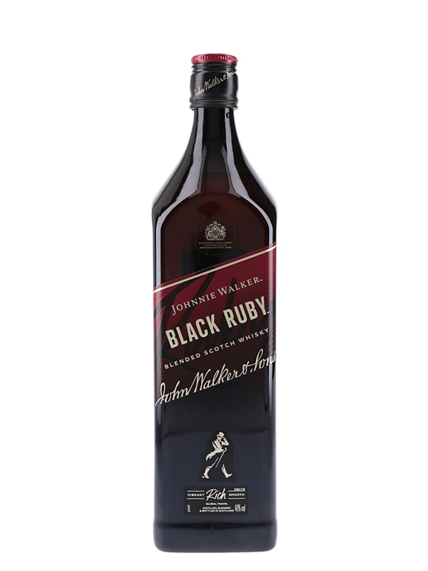 A litre bottle of Johnnie Walker Black Ruby Blended Scotch Whisky.