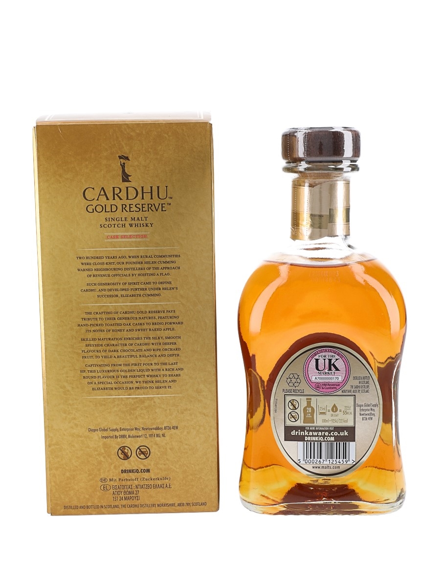 A bottle of Cardhu Gold Reserve Single Malt Scotch Whisky.