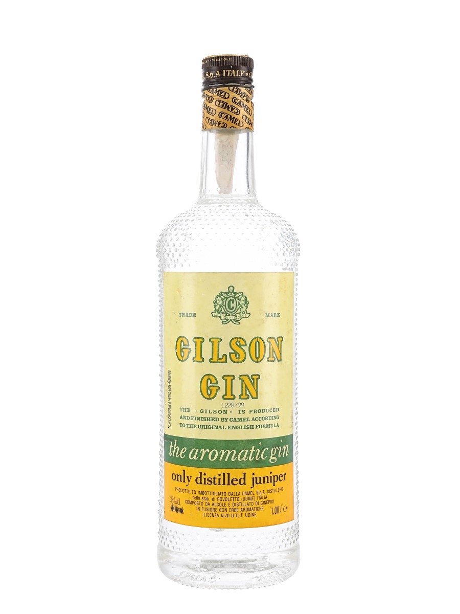 A litre bottle of Gilson gin produced in Italy according to the original English formula. This was distilled and bottled by Camel, we estimate in the 1990s.