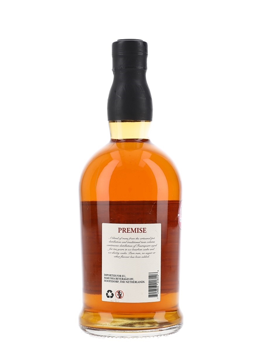 A bottle of Foursquare Premise 10 Year Old Single Blended Rum from Barbados. This is a blend of artisanal pot still and twin column continuous distillate, matured in ex-bourbon and ex-sherry casks for 10 years and bottled at 46% ABV in January 2018 as part of the Exceptional Cask Selection series.