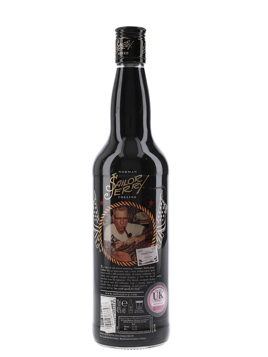 A bottle of The Original Sailor Jerry Spiced Caribbean Rum, blended with natural spices. This is one of four limited editions from Sailor Jerry.
