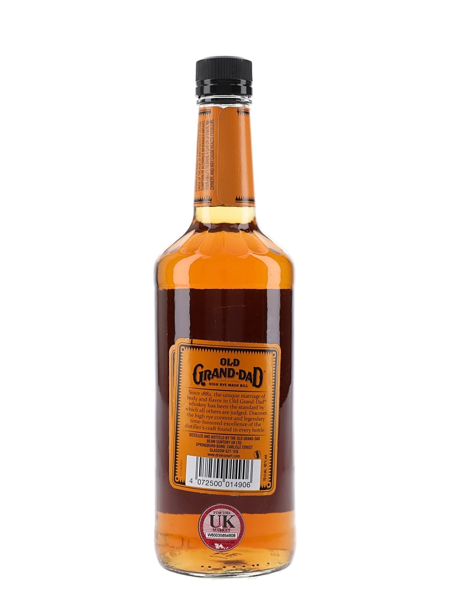 A bottle of Old Grand-Dad 80 Proof Kentucky straight bourbon whiskey.